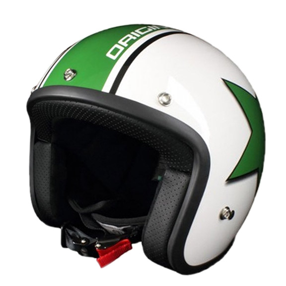 Шлем Origine Primo Astra (Ориджн Примо Астра) в бело-зелёном цвете с логотипом фирмы. Удобный открытый шлем без стекла с максимально облегчённой конструкцией. Отличный вариант для скутера и мотоцикла.