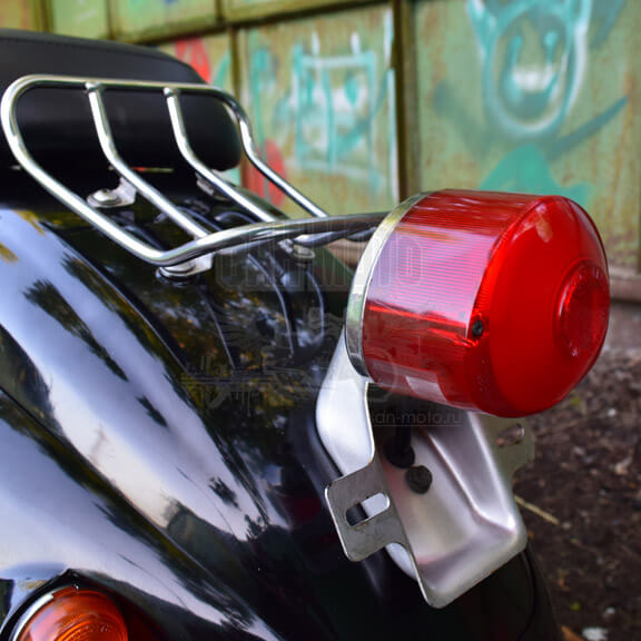 Подвеска имеет стандартную для ретроскутера настройку и компоновку : спереди и сзади самые простые пружинные амортизаторы сухого типа, не требующие обслуживания на весь срок эксплуатации подвески.